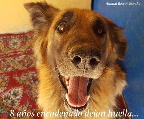 “After many years as a dog guard, tied with a chain of punishment whose spikes had already embedded in his neck, he was to be sacrificed. So we decided to save him and since then he’s in treatment for his fears,” Animal Rescue España said on their Facebook page. “His heart has many hard scars to erase.”