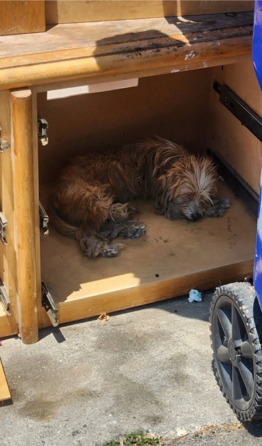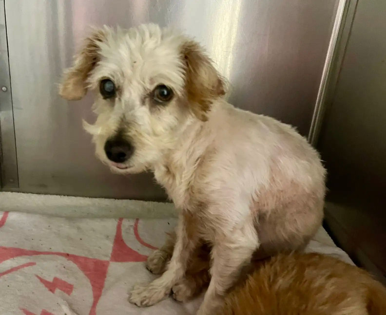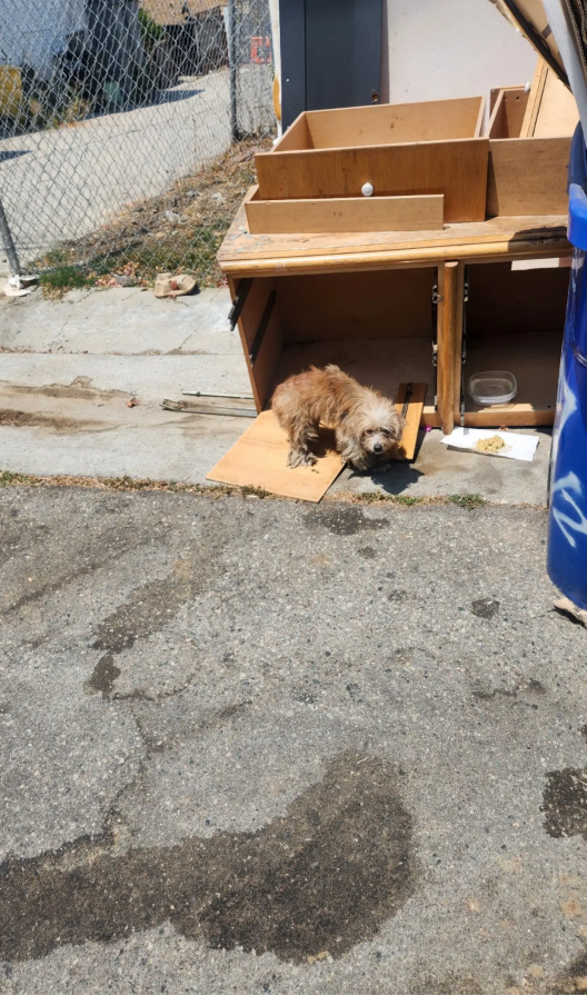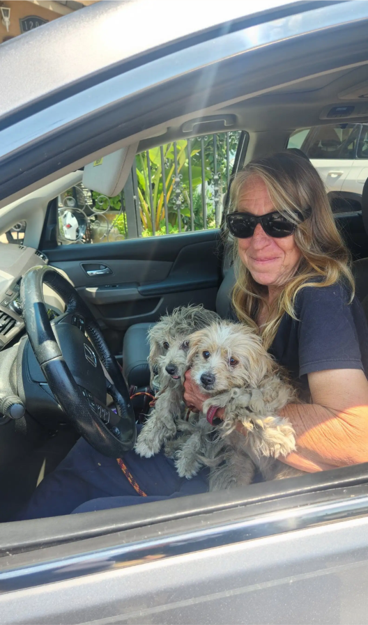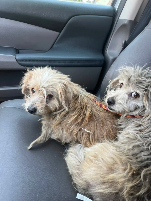 Nestled among a pile of discarded furniture were two tiny, matted dogs — trembling, hungry, and heartbreakingly alone.