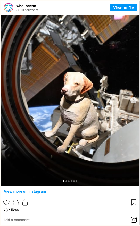 Her friends at the Woods Hole Oceanographic Institution (WHOI) knew how deeply she loved her pups — so they decided to send a little piece of them to her. During a resupply mission, they shipped up mini figurines of Rotor and Gunner, hoping they’d bring a touch of home to the farthest reaches of space.