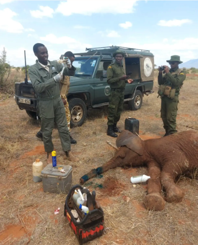 The onlookers immediately contacted Sheldrick Wildlife Trust (SWT), a conservation organization that specializes in rescuing injured elephants. SWT quickly coordinated with the Kenya Wildlife Service (KWS) to deploy a veterinary response team before it was too late.