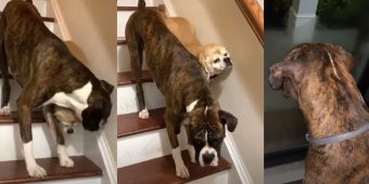 Dog Guides Blind Pup Down The Stairs & Keeps A Close Eye As He Lets Him Out