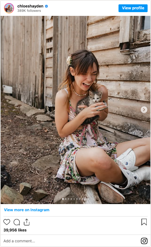 “My bridesmaid spotted this tiny little head poking out from under the barn,” Hayden wrote on Instagram. “He was so small and so scared, and we made it our mission to befriend him.”
