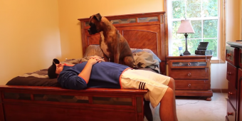 Have you ever heard of the term ‘pre-departure cues’? It’s what your dogs pick up on (e.g. your every movement.. lol) prior to your leaving. For example, if you grab … Continue reading Whenever dad grabs his “walking” shoes… this Boxer does THIS, and it’s HILARIOUS!