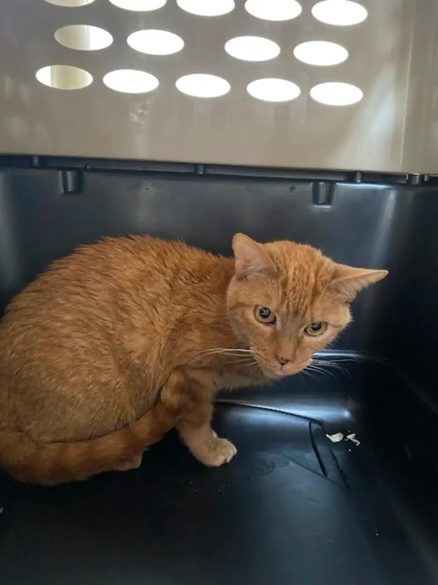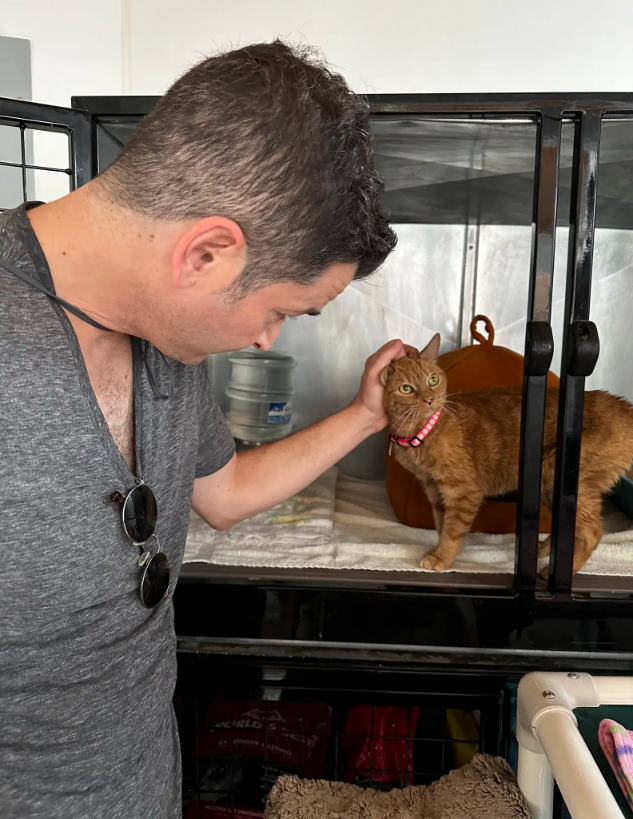When Bellotti met the surviving cats, one immediately caught his heart — a frail orange tabby who had spent every moment of her nearly 13 years inside that facility. She was thin, terrified, and too anxious to eat. But when their eyes met, something in her shifted.