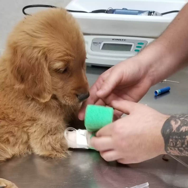 Wood suspects the puppy, now named Dexter, was abandoned by a backyard breeder after he became sick. Sadly, she says, this happens far too often.