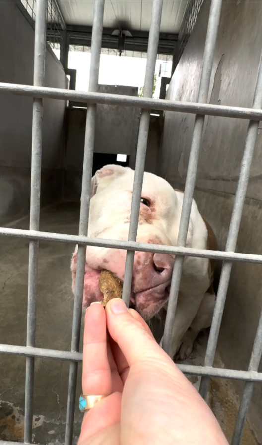 Inside the kennel sat Sadie, a trembling dog whose soft, pitiful whimpers filled the room. While other dogs barked for attention, Sadie simply cried. McDonough knelt beside her cage, speaking gently and offering comfort through the bars.