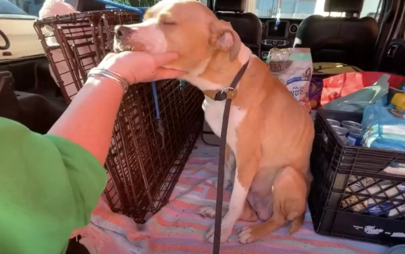 At the vet, the dog — now named Dodie — melted into the arms of her caretakers, soaking up affection as if she’d been waiting for it all along.