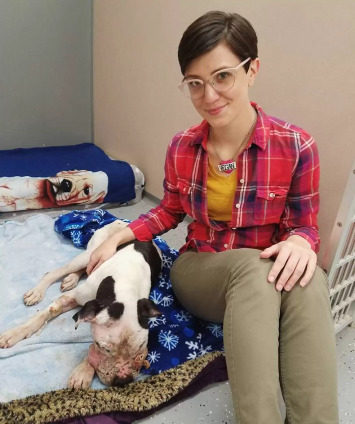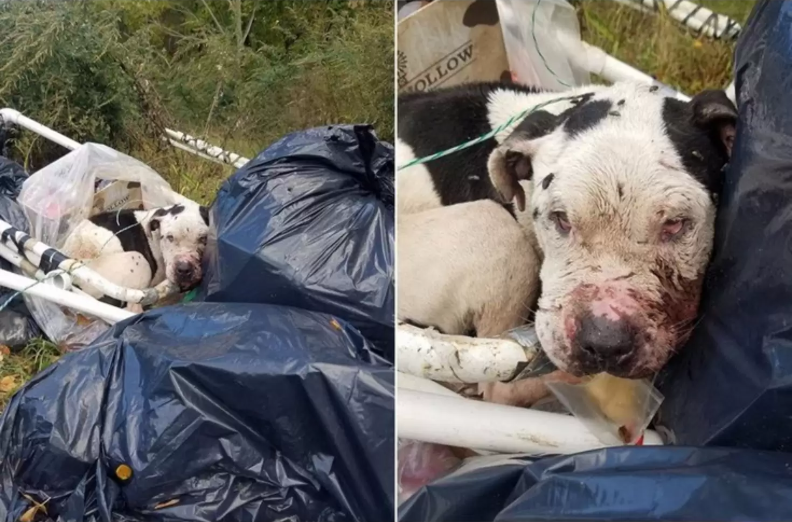When rescuers first saw Charlie, he was barely hanging on. The 2-year-old pit bull mix had been cruelly tied to a dumpster, his face swollen from beatings and his body weak from hunger.