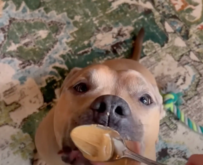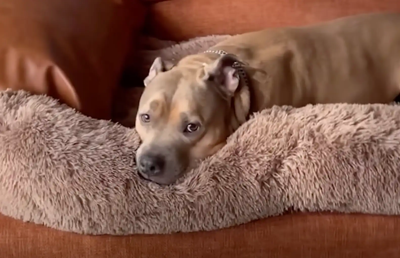 Now, more than a year into his foster journey, Ralphie is thriving. He’s calm, affectionate, and full of personality — a far cry from the trembling dog who once hid from the world.
