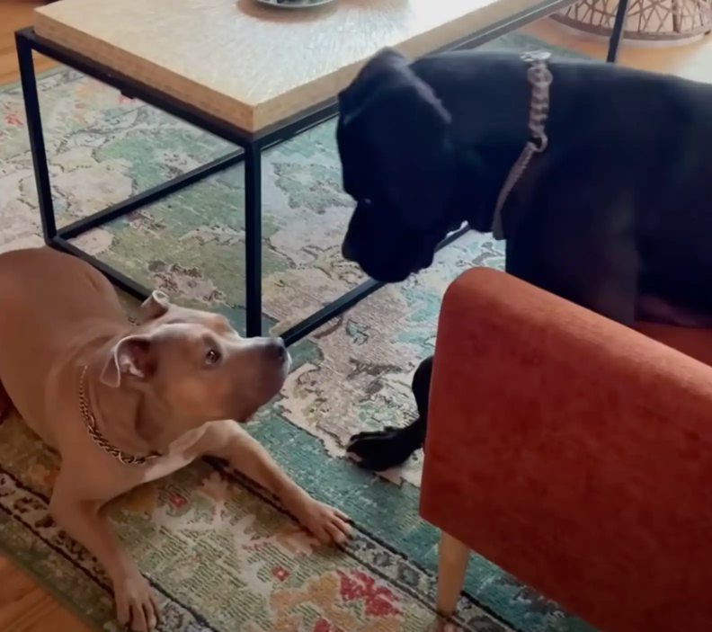 Eventually, Burns decided to try introducing Ralphie to her dog, Winnie. She started slowly — one dog in a crate, one free to roam — rewarding them for calm moments together.