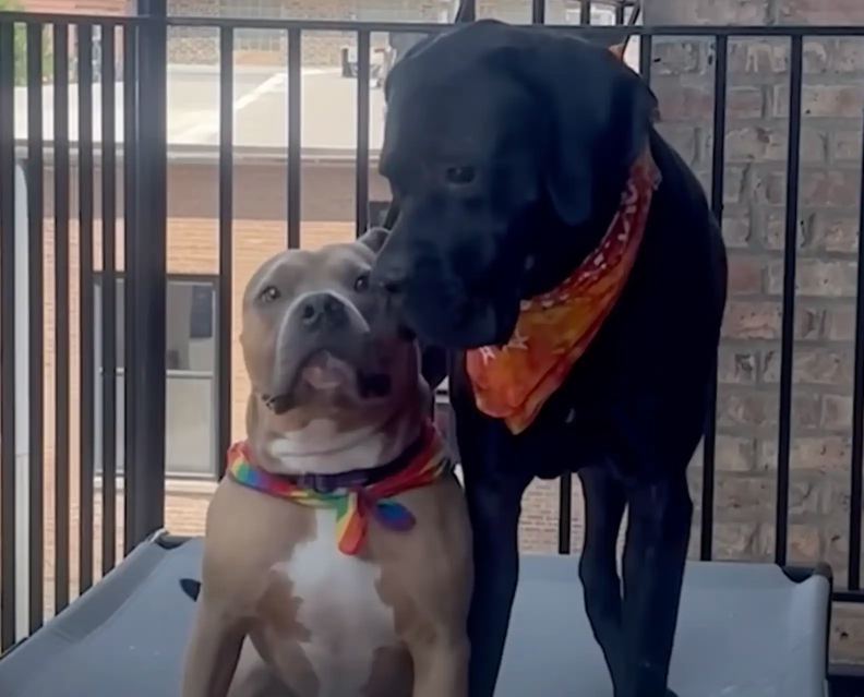 “One afternoon, they were on my balcony,” Burns said. “Winnie hovered over Ralphie while he was lying on a fluffy bed. They sniffed each other — and then just started playing. Wrestling, goofing around, having fun.”