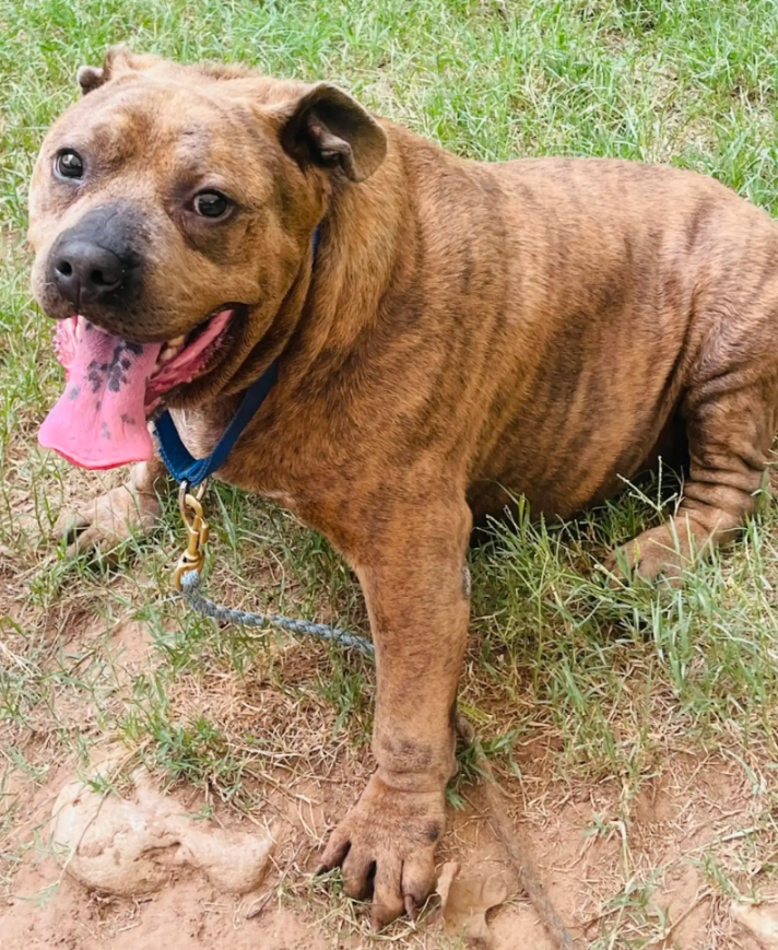 When a pit bull mix named Squishapotamus arrived at Austin Pets Alive! (APA!), he didn’t look like the other dogs. His eyes were tired and uncertain, and his body — weighing in at just over 100 pounds — was struggling to carry him.