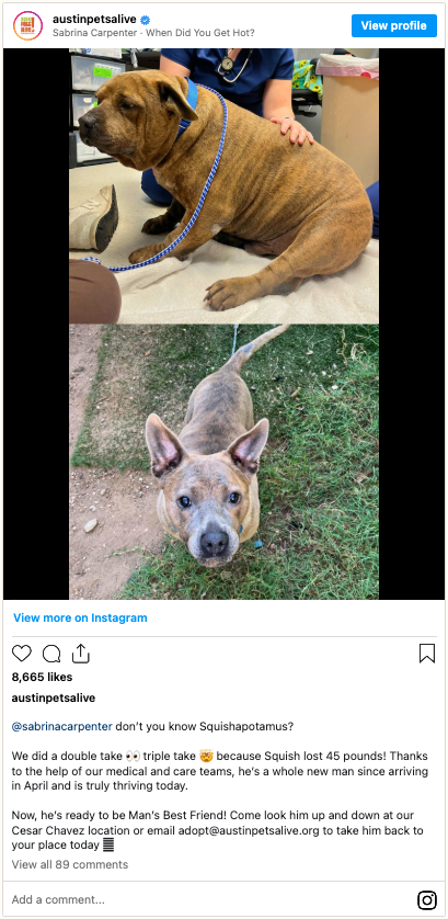 To support dogs like Squish on their journey to health and happiness, you can donate to Austin Pets Alive! here.