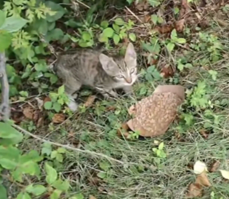 When Debacker got there, the tiny kitten was still dangerously close to traffic — terrified, hungry, and confused.