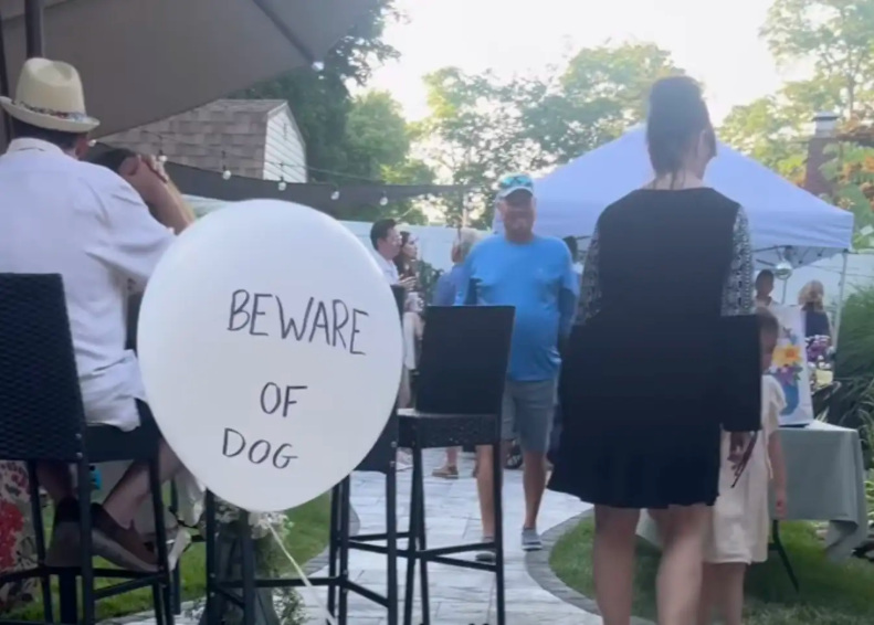 The balloon — cheekily labeled “BEWARE OF DOG” in bold black letters — made everyone laugh, but it also worked perfectly.