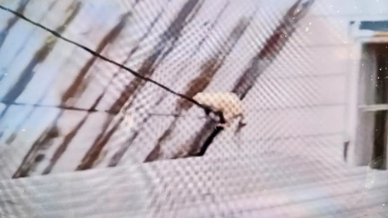 Nan brought food and spent nearly an hour coaxing him down. Finally, Blanco stepped onto the wreckage of their barn and allowed her to touch him.