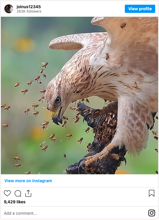 So while the scene looks like a high-risk stunt to human onlookers, to the honey buzzard it’s simply routine.