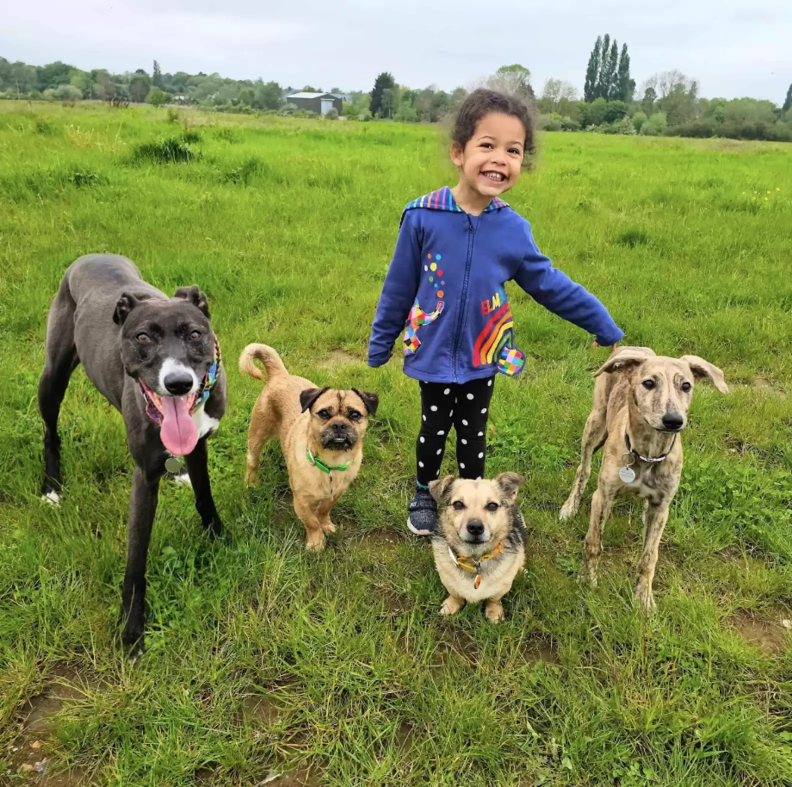 Since then, Mossy has looked up to Doug in every way — sometimes a little too literally. When he’s not flattening Doug in a display of brotherly love, he’s busy romping around with his other dog siblings, Lyra and Bertie.