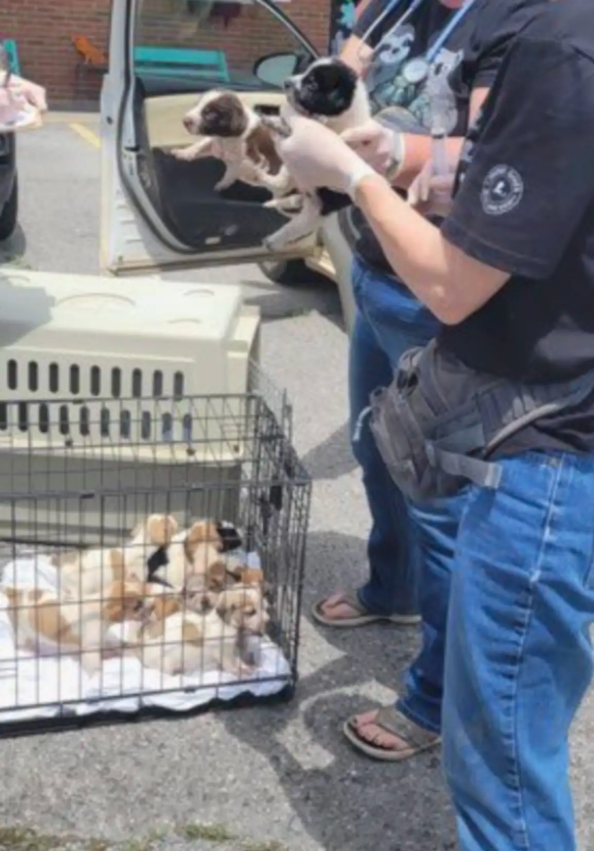 Inside the box were 30 tiny puppies, huddled together for warmth and comfort, weak and frightened after being dumped with no way to survive on their own.