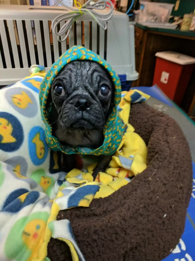 When rescuers first met Dex, the tiny pug looked like he’d already lived a lifetime of hardship.