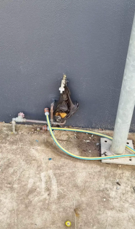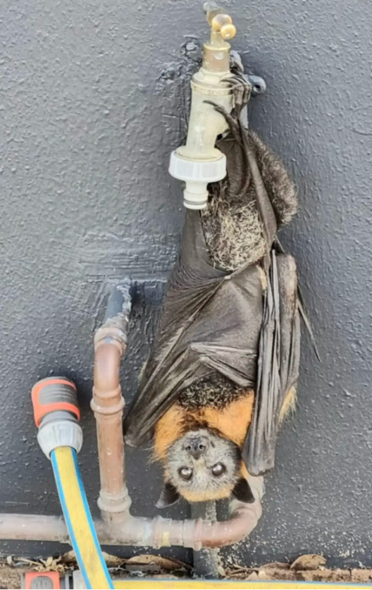 Helpless Bat Hangs From Water Tap, Hoping Someone Will Notice