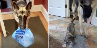Anya, the German Shepherd always helps her mom, Lori Knoble around the house. When the family decided to bring home a stray cat, Anya took the role to be the … Continue reading Intelligent and Kind German Shepherd Does Housework & Shows Us That Dogs And Cats Can Be Friends