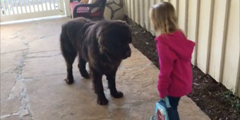 Every morning before school, Sierra says goodbye to her dog, Samson the Newfoundland, with three quick kisses on the nose! The bond between these two is just incredible. 😊