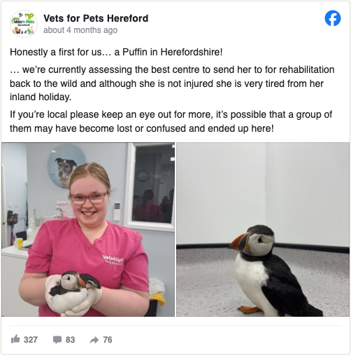 Lost Little Puffin Found Wandering 110 Miles From the Sea