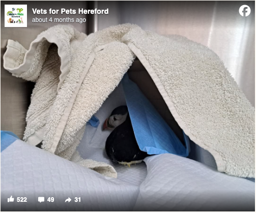 Startled but compassionate, the homeowner scooped up the lost bird and rushed her to Vets for Pets Hereford, where staff were stunned to meet such an unusual patient.