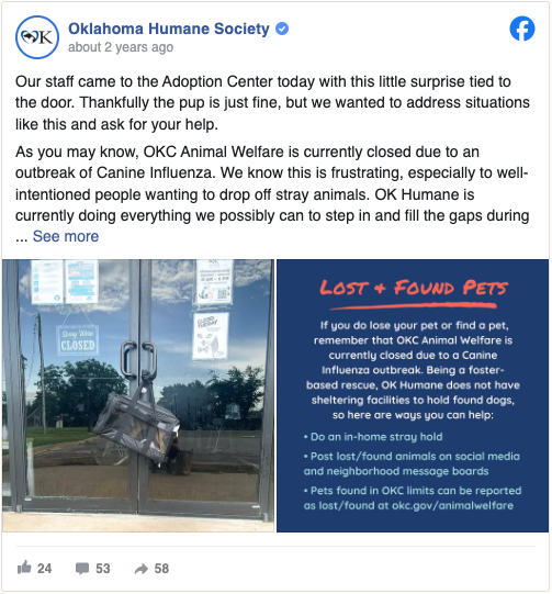 The Oklahoma Humane Society shared Maris’ story online — not to shame the person who left her, but to highlight the overwhelming number of homeless animals in the community and the urgent need for foster families.