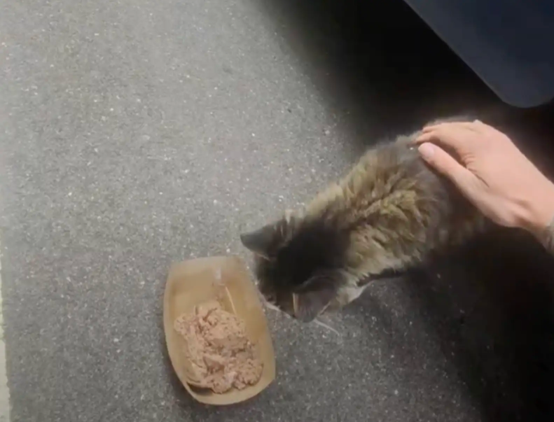 For weeks, the little visitor lingered around the lot, darting under vehicles and accepting food from kind employees — but never venturing far.