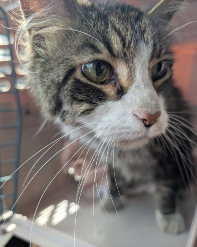 This well-traveled cat has had enough excitement for one lifetime — and now, all he wants is a soft bed, a steady routine, and someone to love him for good.
