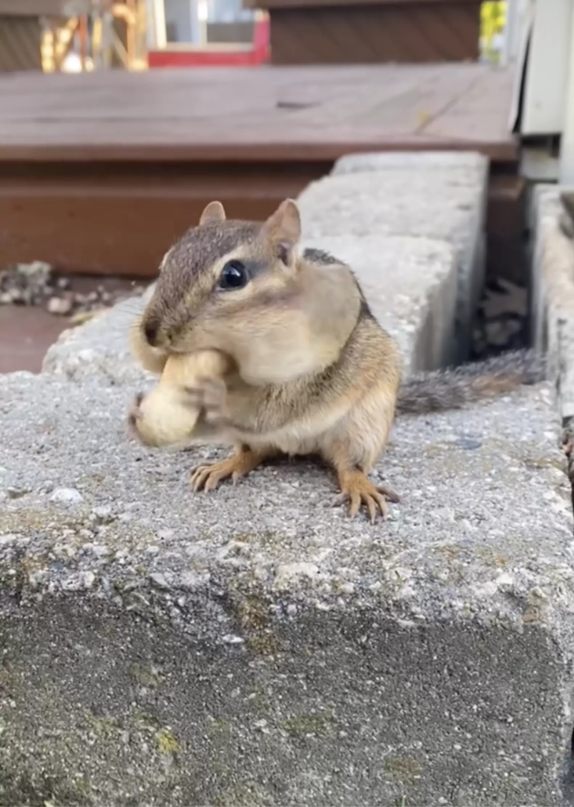 Wanting to make friends, Adam started leaving small piles of nuts out for the chipmunks, helping keep their bellies full.