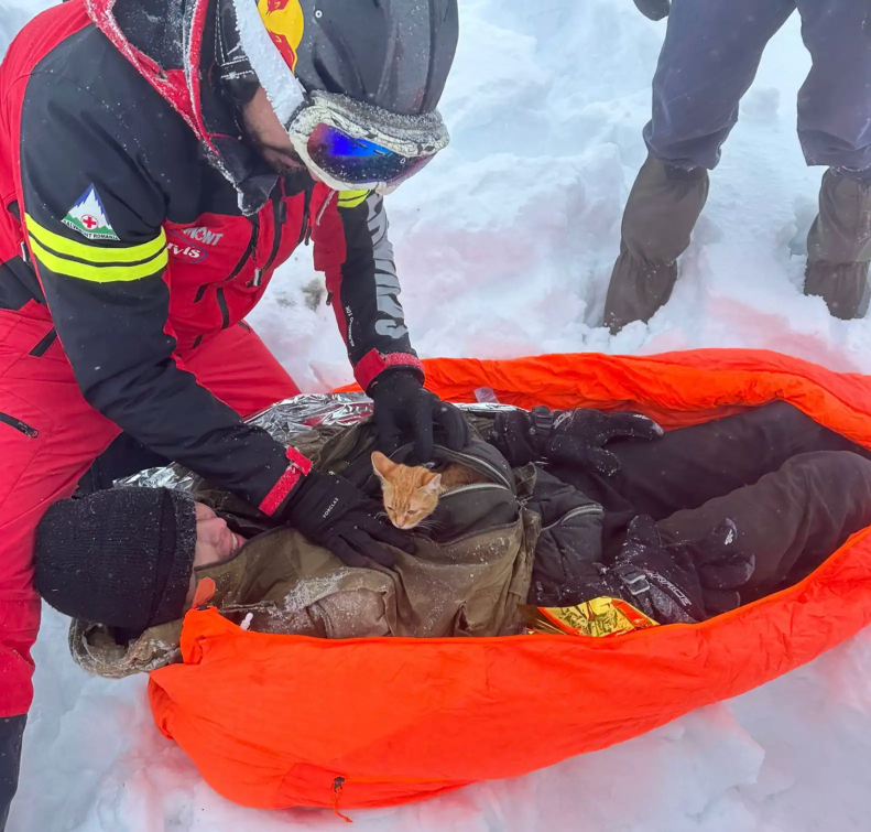 “The cat was warm and was warming him,” said Dan Benga, director of the rescue crew. “She saved his life. The only thing he cared about was the cat — not himself.”