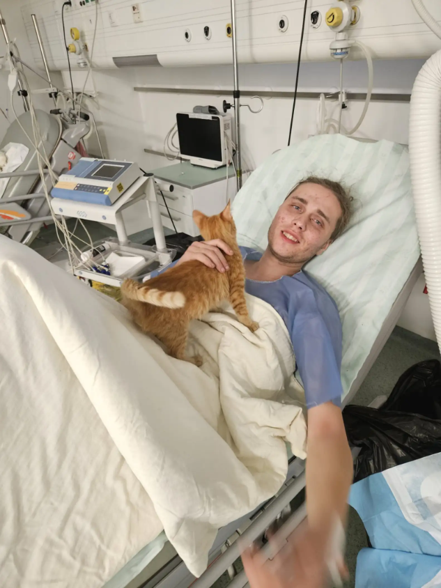 For nearly 24 hours, Duda lay in the ravine, clinging to consciousness — and to Peach. The little kitten pressed herself against him, sharing what warmth she could.