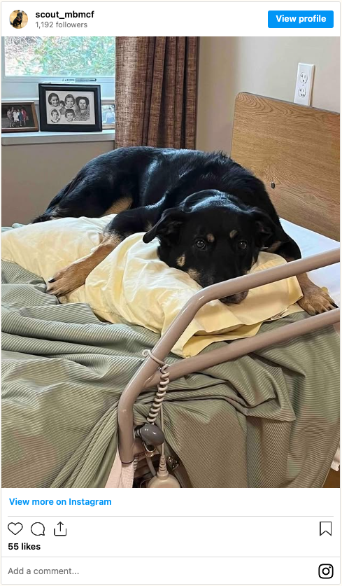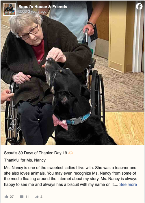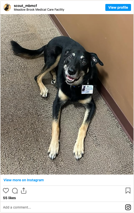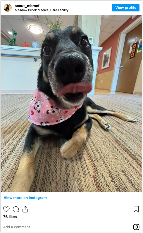“Scout truly brings joy to our residents, staff, and visitors,” the team shared. “This is his home. He chose us.”