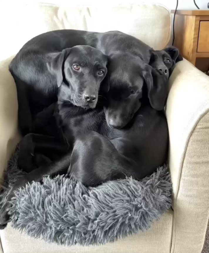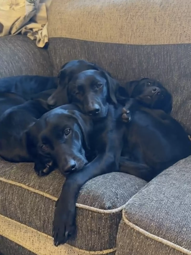 From a distance, it’s almost impossible to tell where one Lab ends and another begins. Sometimes you can spot a snout or a paw sticking out — but often, the dogs blend together so completely that viewers are left guessing how many are actually in the pile.