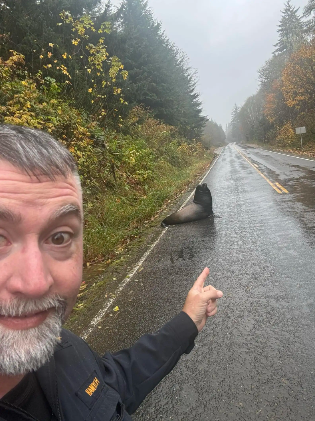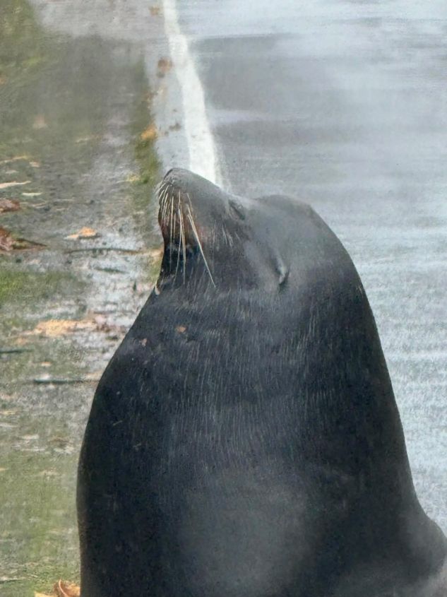 The animal wasn’t a seal at all, but a hefty California sea lion, likely having made its way inland by swimming up a nearby river connected to the ocean. And once it chose its spot on the road, it seemed perfectly content to stay there.