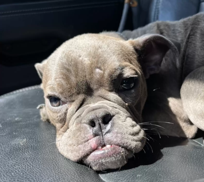 A family had discovered a small gray puppy planted firmly on their porch — and she refused to budge.