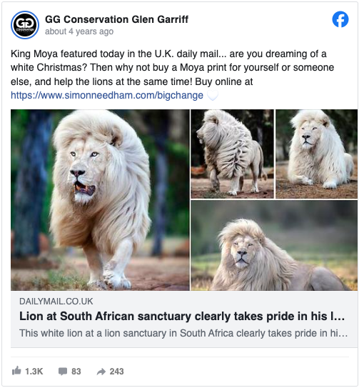 “I’m really happy to be part of bringing well deserved attention to a very worthy cause at GG Conservation Glen Garriff where they have 77 lions in their care,” he wrote in a follow up post.