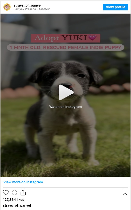 You can follow Strays of Panvel on Instagram to see more of Pawase’s rescue work or make a donation to support pups like Yuki.