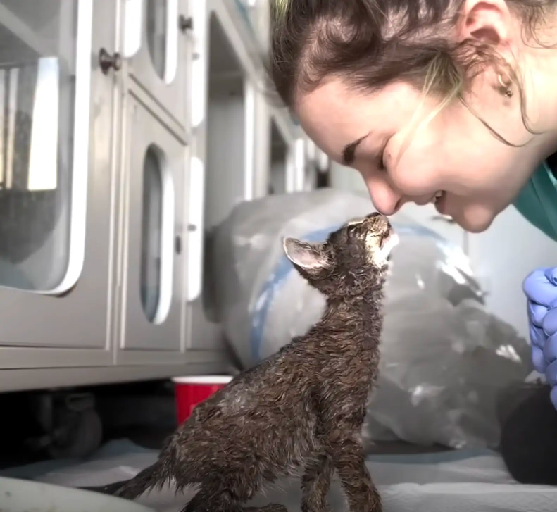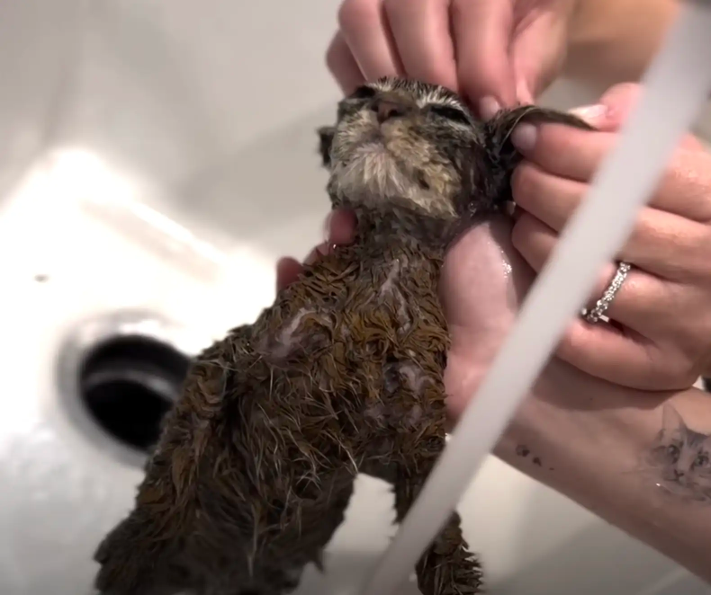 Rescuers ‘In Tears’ When Tiny Kitten Arrives Coated Head To Toe In Paint