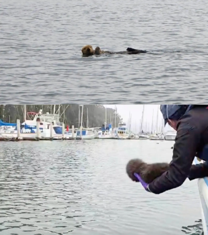 Within minutes, trained responders arrived with help from the Morro Bay Harbor Patrol. Together, they carefully secured the tiny otter and placed him safely inside a carrier while they worked on the next critical step.