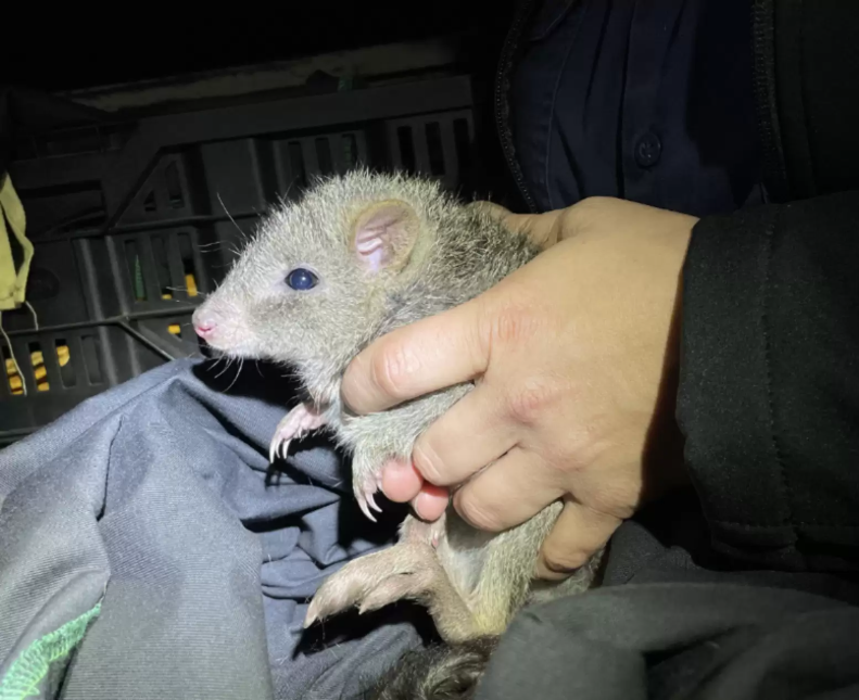 Peering closer, they couldn’t believe their eyes. Nestled inside was a tiny, fuzzy brown marsupial, calmly watching them — a northern bettong.