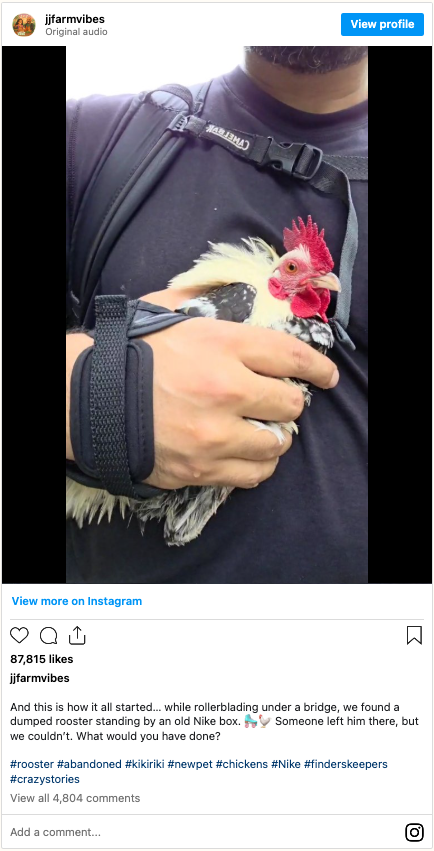 “John was a little ahead of me,” Jeniffer told The Dodo. “And all of a sudden, he goes, ‘Wait … is that a rooster?’”