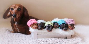 If you think newborn photo shoots are adorable, wait until you get a load of a dog’s version! Courtesy of Belinda Sol Photography, this sausage family has raised the bar. Take … Continue reading Sausage Dog Momma And Her 6-Mini Sausages Pose For A “Family” Photoshoot
