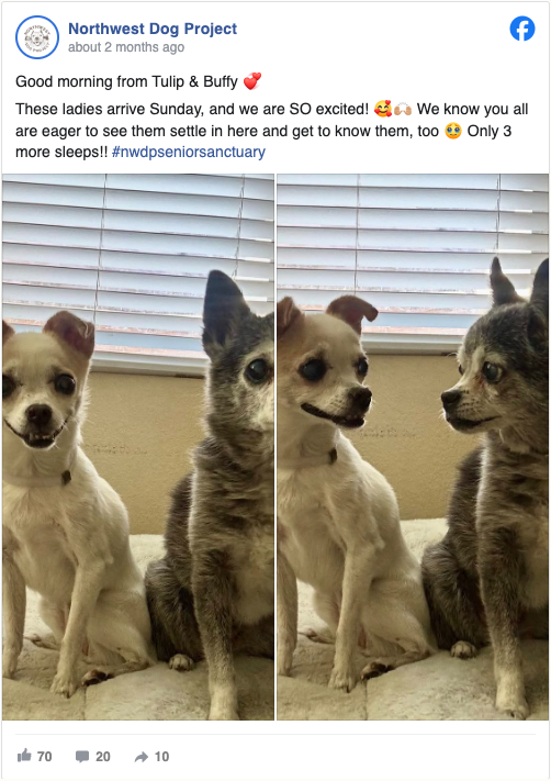 Once they’ve been fully cleared by their vets, Tulip and Buffy will be available for adoption. But the team at Northwest Dog Project isn’t in a rush — they’re happy to care for the sisters as long as needed.