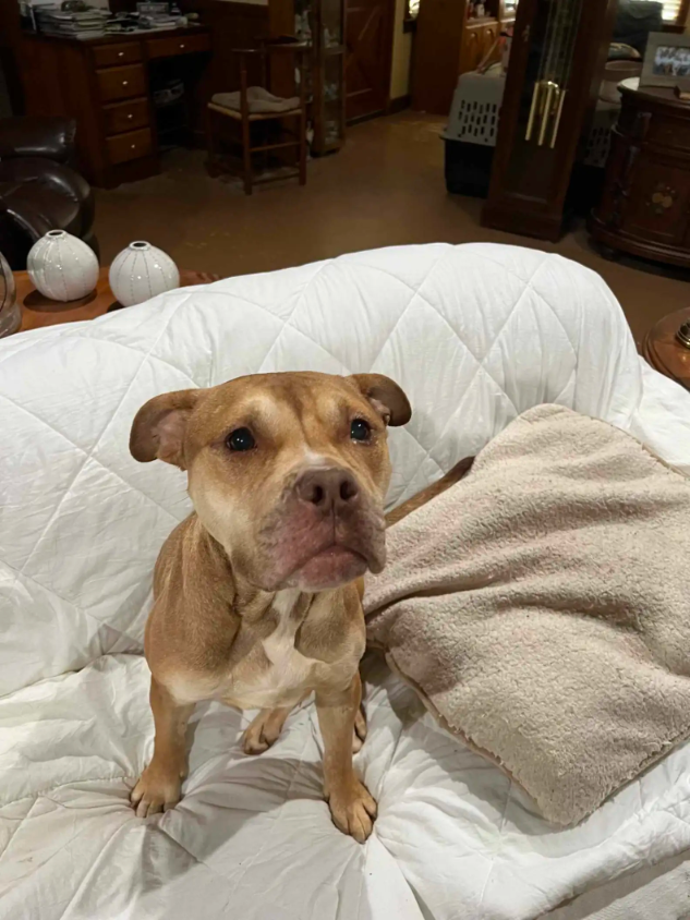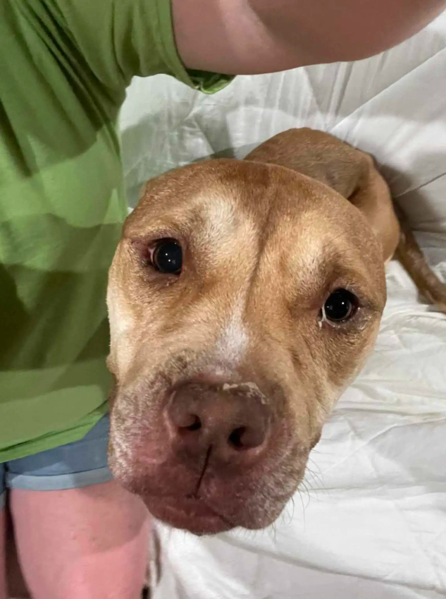 When rescuers first found Dawn, a gentle pit bull, she was tied to a crate outside an abandoned home in Georgia — no food, no water, no shade. She was the only survivor of a heartbreaking cruelty case, barely holding on when help finally arrived.