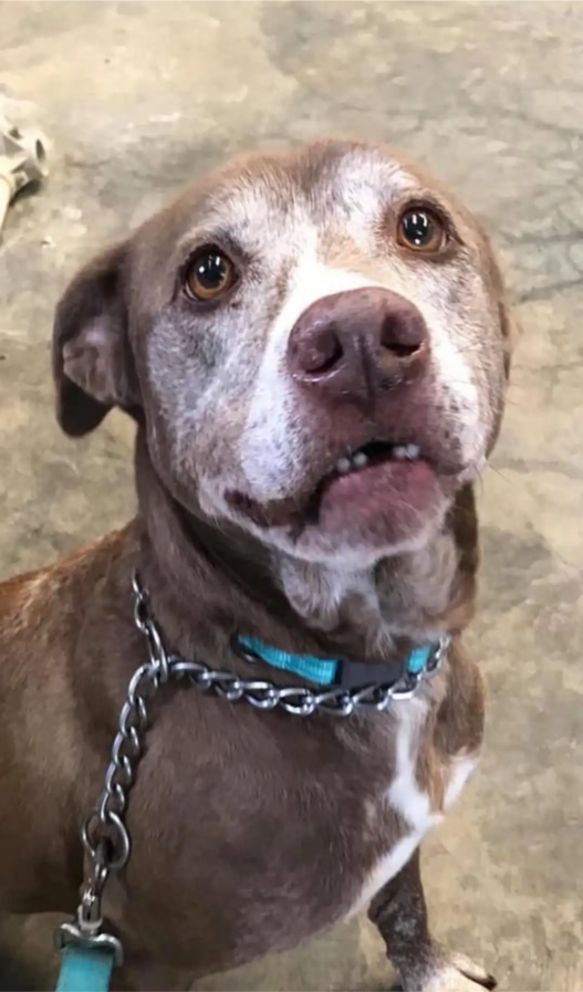 By the time seven years had passed, the once-spry brown dog had grown old. Her muzzle had faded to gray, and the spark in her eyes had dimmed. But her life hadn’t changed. The shelter had become her entire world.