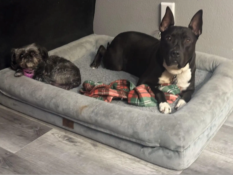 “Black pitties like Milo take longer to be adopted,” she said. “It’s the whole judging a book by its cover thing. He might look intimidating, but he’s really just a big, goofy meatball.”